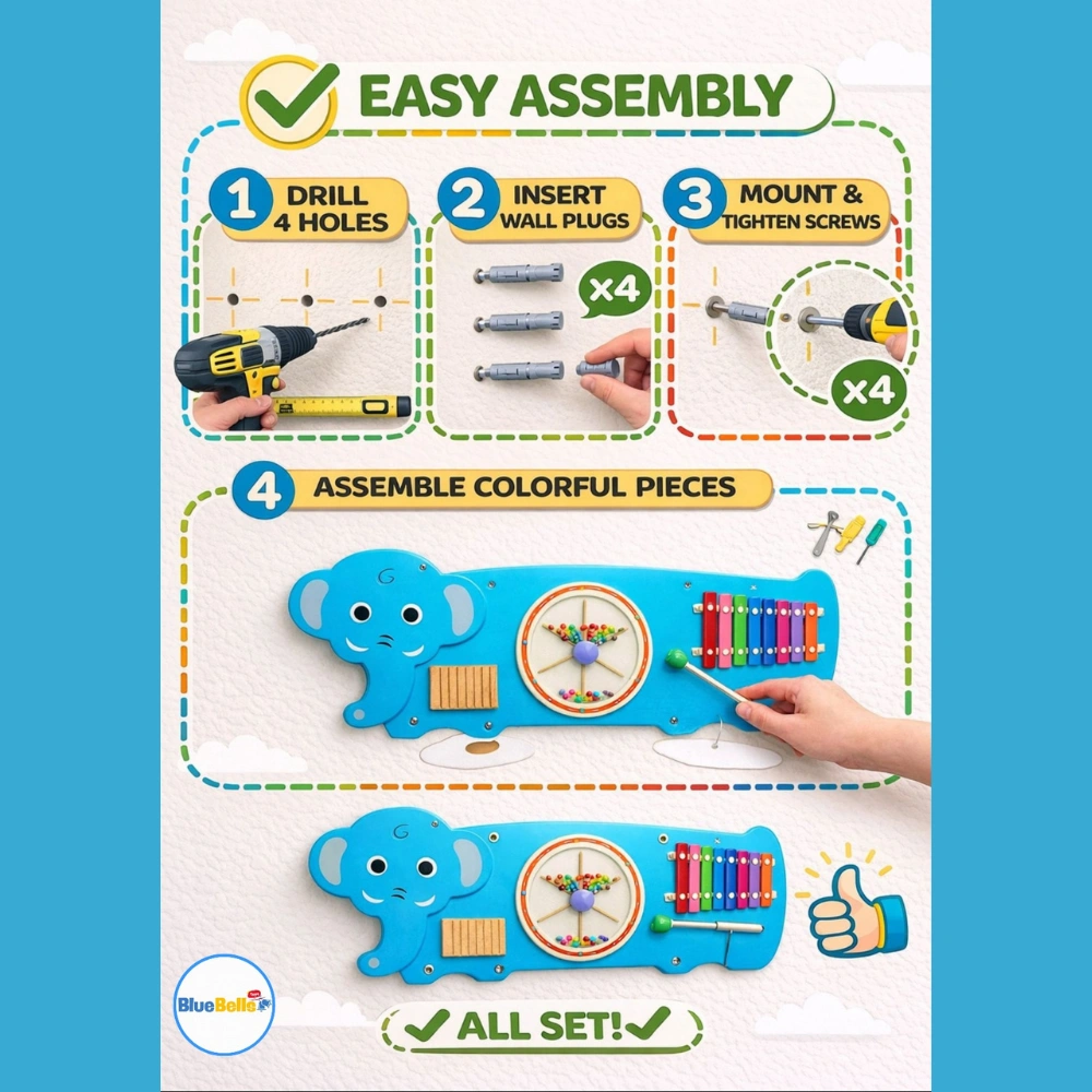 Bluebells Toys Elephant Design Wall Mounted Activity Toy