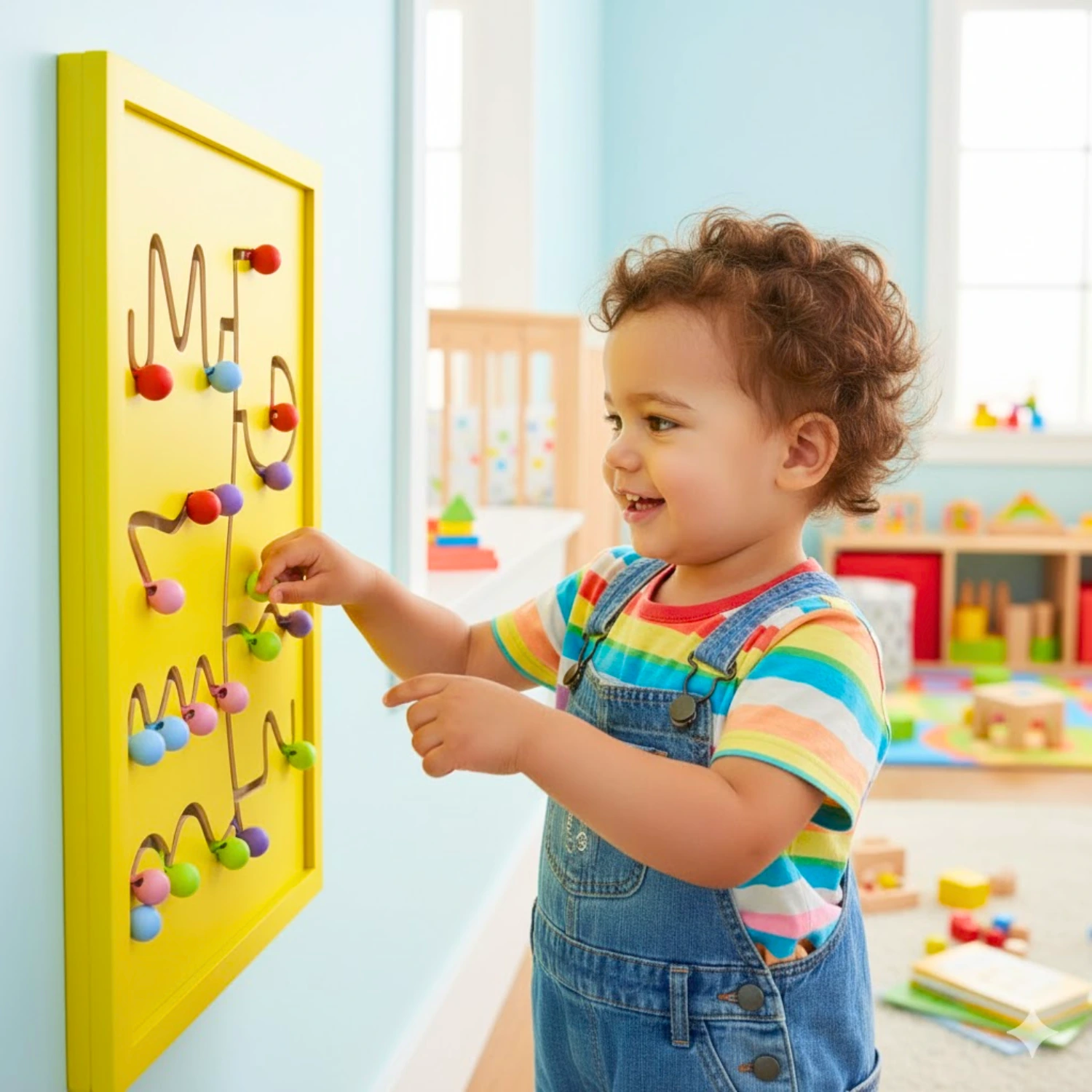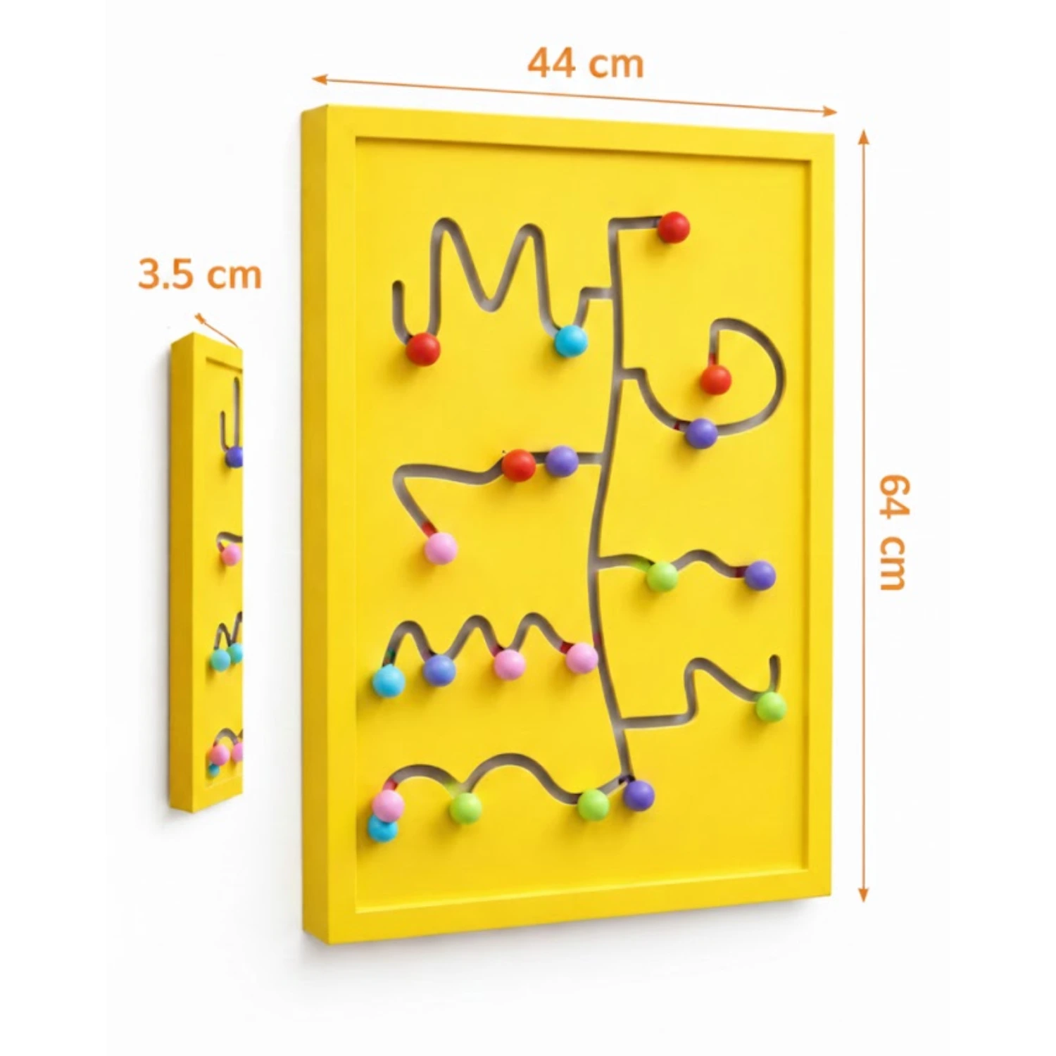 Educational Wall-Mounted Yellow Nob Movers Gaming Toy is an interactive, space-saving activity board designed to keep toddlers engaged while promoting key developmental skills. Children can slide vibrant knobs along the zigzag path, improving their fine motor skills, hand-eye coordination, and problem-solving abilities through hands-on exploration. The bright yellow background and multicolored movable nobs offer visual stimulation and encourage focused, independent play.