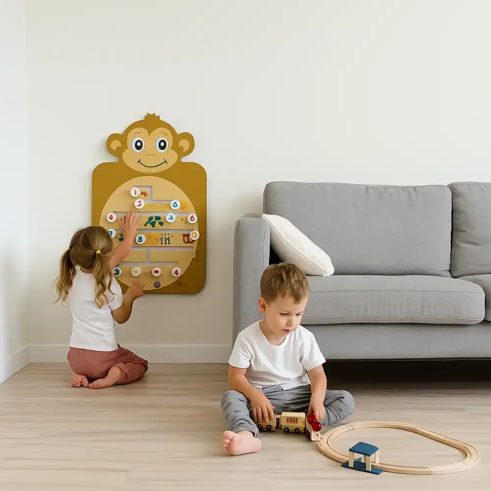 Monkey Wall Toy Learning Wall-Mounted Monkey Toy is a fun and educational wall activity board that keeps kids engaged while boosting their motor skills. Designed with a playful monkey maze theme, this toy helps children develop hand-eye coordination, logical thinking, and finger dexterity.
